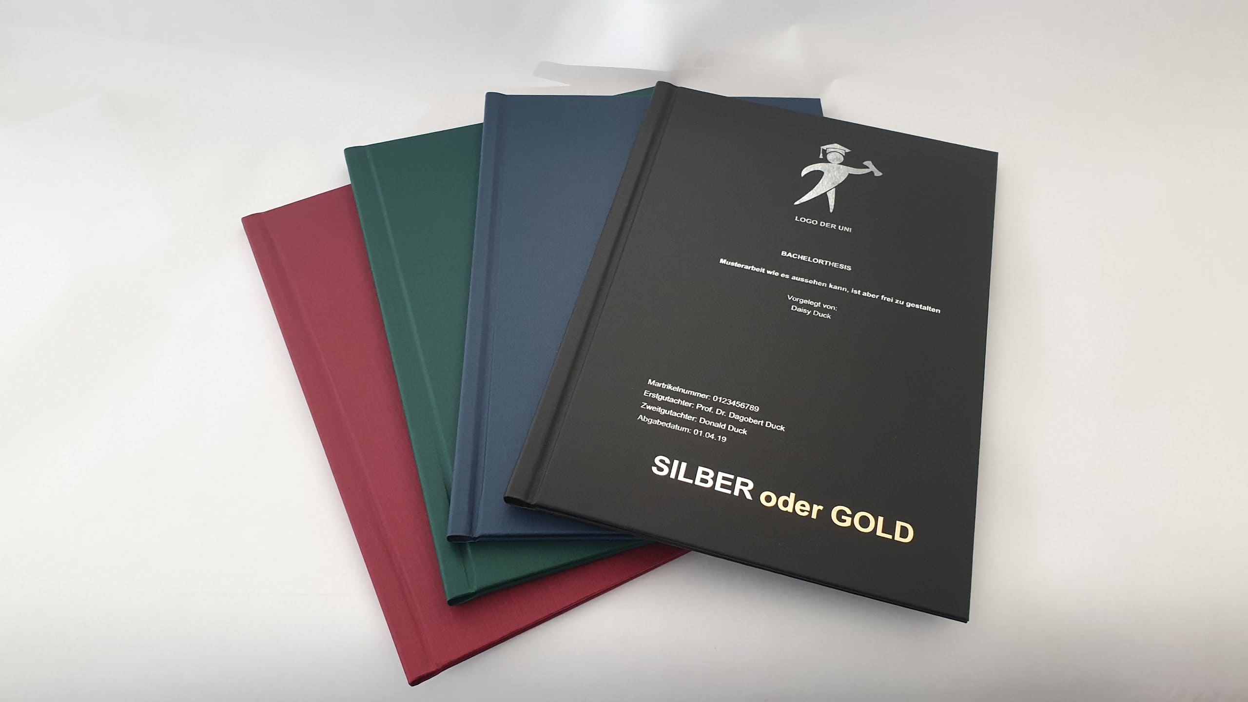 Bei uns können Sie "Abschlussarbeit | Hardcover | Silberdruck Cover" individuell konfigurieren und direkt im Online-Shop bestellen. Sollten Sie dazu Fragen haben oder eine benötigte Option nicht finden, kontaktieren Sie uns gerne!